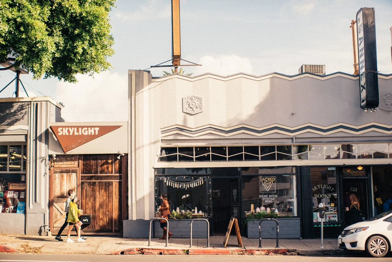 Stop by Atrium for a happy hour of oysters and inventive cocktails on its stunning, soaring, courtyard surrounding a huge live tree. Next door at Skylight Books, browse the selection or take in a book reading and signing by a local writer or world-famous author.